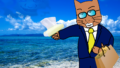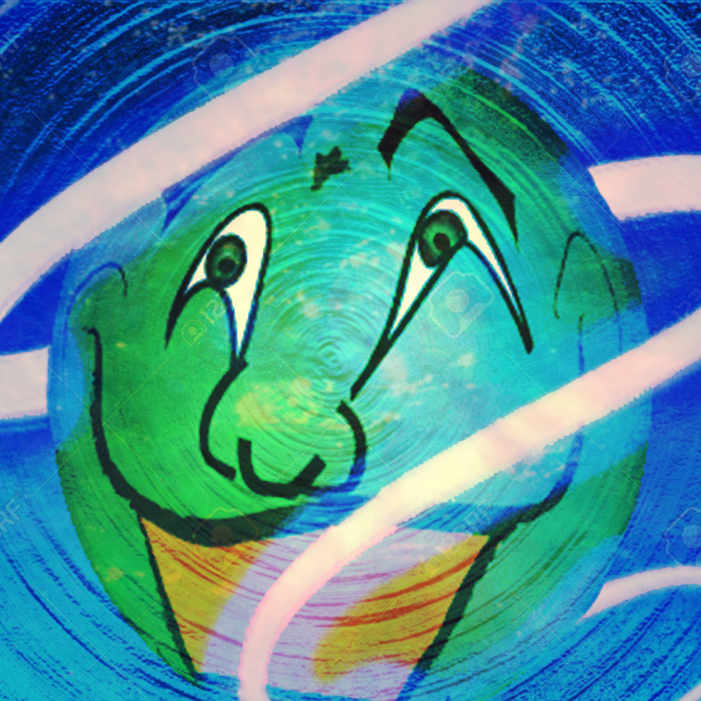ぐるぐると巻く青い渦の中に、緑の顔が笑っている。